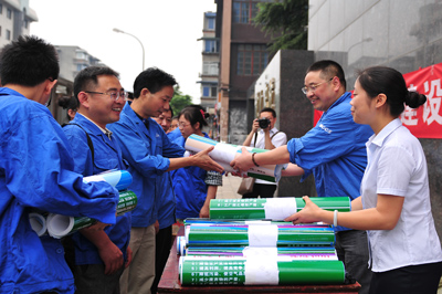 宣傳活動現場對各單位贈送了節(jié)能減排宣傳掛圖,并要求各單位要面向一線進行廣泛宣傳,隨后還開展了節(jié)能減排承諾簽名活動,公司職工及過路市民積極響應,排隊簽名承諾,隨后工作人員派發(fā)了中國五冶集團有限公司特制的倡導低碳綠色生活的環(huán)保宣傳袋,受到廣大職工和市民的歡迎。(鄧超)