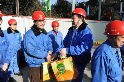 1月27日上午,受中國五冶集團(tuán)暨上海有限公司董事長、黨委書記程并強(qiáng)委托,上海有限公司總經(jīng)理徐永鋒,黨委副書記、工會(huì)主席薛志群,副總經(jīng)理汪忠旭等有限公司領(lǐng)導(dǎo)帶領(lǐng)上海有限公司辦公室、工程管理部、安全監(jiān)督管理部、黨群工作部等部門負(fù)責(zé)人,來到寶鋼廠內(nèi)五冶施工工地,慰問將在春節(jié)期間奮戰(zhàn)施工一線的員工,為他們送去了春節(jié)慰問品,讓堅(jiān)守在崗位上的員工們感受到了公司領(lǐng)導(dǎo)的關(guān)懷和冬日里的溫暖。