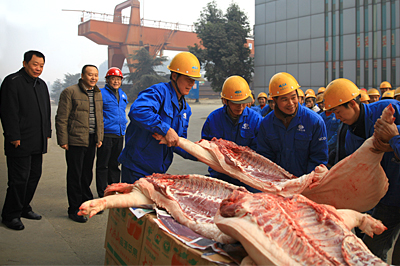 現(xiàn)場,蒙昌嘉一行對過去一年里廣大員工的辛勤努力表示感謝,希望大家來年繼續(xù)努力,再戰(zhàn)高峰,并給大家送上了豬肉、水果、春聯(lián)等慰問品,祝福全體員工們新春吉祥如意。同時,蒙昌嘉還就節(jié)日期間的安全生產問題進行強調,叮囑他們一定要把安全工作落實到每一個細節(jié),度過一個歡樂、祥和、愉快的新春佳節(jié)?! 。ㄠ嚦?br/>