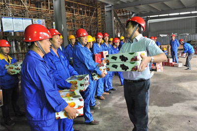 9月30日上午,正值祖國(guó)65歲華誕即將來(lái)臨之際,受中國(guó)五冶集團(tuán)暨上海有限公司董事長(zhǎng)、黨委書記程并強(qiáng)委托,上海有限公司領(lǐng)導(dǎo)徐永鋒、薛志群、汪忠旭、倪治壽及有限公司機(jī)關(guān)部門負(fù)責(zé)人一行來(lái)到寶鋼一期焦?fàn)t原地大修改造工程項(xiàng)目部,慰問(wèn)奮戰(zhàn)在施工一線的廣大員工們,向他們送去節(jié)日慰問(wèn)品,并祝愿他們節(jié)日愉快。
