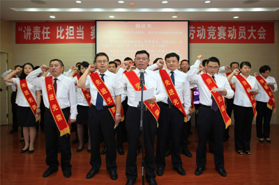 集團(tuán)公司董事長(zhǎng)、黨委書記程并強(qiáng)在會(huì)上作重要講話,對(duì)演講效果進(jìn)行了點(diǎn)評(píng),就如何開展好勞動(dòng)競(jìng)賽進(jìn)行了強(qiáng)調(diào)。他說:演講發(fā)言的八名員工代表,既有集團(tuán)公司領(lǐng)導(dǎo),也有機(jī)關(guān)部門負(fù)責(zé)人和二級(jí)單位負(fù)責(zé)人,還有基層一線的項(xiàng)目部負(fù)責(zé)人,他們分別從轉(zhuǎn)型、提升、擴(kuò)張發(fā)展方面談了講責(zé)任、敢擔(dān)當(dāng)?shù)母惺?、體會(huì)以及個(gè)人的努力和實(shí)踐,體現(xiàn)了他們的敬業(yè)和奉獻(xiàn),從他們身上看到了我們五冶人敢擔(dān)當(dāng)?shù)木瘢吹搅藘杉?jí)經(jīng)營(yíng)層敢于拼搏的精神、敢于奮斗的精神、努力的工作狀態(tài),體現(xiàn)了五冶員工的敢擔(dān)當(dāng)、講敬業(yè)、負(fù)責(zé)任的精神;從他們身上看到了集團(tuán)公司轉(zhuǎn)型、提升、擴(kuò)張發(fā)展戰(zhàn)略的落實(shí),堅(jiān)定了我們發(fā)展的信心和決心。在開展勞動(dòng)競(jìng)賽動(dòng)員中,集團(tuán)公司各級(jí)勞模和先進(jìn)典型的代表進(jìn)行了鄭重承諾和集體倡議,有氣勢(shì)、有力量、鼓舞人心,為他們的擔(dān)當(dāng)精神、敬業(yè)精神和責(zé)任意識(shí)點(diǎn)贊。