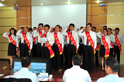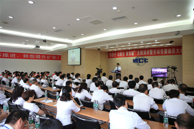 “認(rèn)真踐行‘打造競(jìng)爭(zhēng)優(yōu)勢(shì)’的發(fā)展文化、‘嚴(yán)細(xì)新實(shí)’的管理文化、‘敢擔(dān)當(dāng)看療效’的責(zé)任文化,充滿勇氣、充滿信心、充滿激情,奮力開拓市場(chǎng)、全面提升產(chǎn)品、促進(jìn)經(jīng)營(yíng)創(chuàng)效,為實(shí)現(xiàn)‘轉(zhuǎn)型、提升、擴(kuò)張’戰(zhàn)略目標(biāo)而努力奮斗!”5月4日上午,中國(guó)五冶大廈三樓多功能廳和上??萍紭橇鶚谴髲d里掌聲雷動(dòng),一場(chǎng)以“講責(zé)任?比擔(dān)當(dāng)?賽貢獻(xiàn)”的主題演講和“比貢獻(xiàn)?看療效?保目標(biāo)”的勞動(dòng)競(jìng)賽動(dòng)員大會(huì)正在進(jìn)行。集團(tuán)公司領(lǐng)導(dǎo)、董事會(huì)秘書、總經(jīng)理助理、副三總師,集團(tuán)公司機(jī)關(guān)部門正副職、主管,四川地區(qū)各二級(jí)單位班子成員,上海有限公司班子成員,上海有限公司機(jī)關(guān)部門正副職、主管,上海有限公司各單位班子成員共三百余名參加。會(huì)議由集團(tuán)公司董事、總經(jīng)理蒙昌嘉主持。