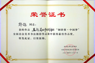 在中冶集團承辦的“鋼鐵情?中國夢”為主題的2014年全國冶金美術(shù)作品展活動中,我公司員工董玉竹、蘭娜、鄧超的3幅作品獲得最佳作品獎,6幅作品獲得優(yōu)秀作品獎。據(jù)了解,此次共有來自全國冶金系統(tǒng)的近500幅作品參加了展出,集團文化中心精心組織,挑選了一批優(yōu)秀作品參加展覽,這些美術(shù)攝影作品從藝術(shù)角度反映了“中國夢”與“美好中冶”的緊密關(guān)系,表現(xiàn)出了五冶人?“一天也不耽誤,一天也不懈怠”的奮斗精神,受到組委會的一致好評。(鄧超)?