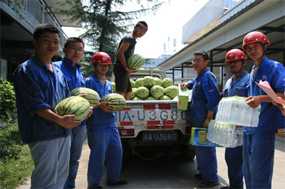 近來,四川地區(qū)連日高溫,廣大職工仍堅(jiān)守在施工一線。7月27日,集團(tuán)公司工會(huì)受集團(tuán)公司黨政領(lǐng)導(dǎo)委托,在四川地區(qū)施工現(xiàn)場(chǎng)開展了高溫慰問送清涼活動(dòng),為一線職工送去了慰問信以及涼茶、西瓜、礦泉水等慰問品。首批慰問了新華之星項(xiàng)目、華新美廬項(xiàng)目、藍(lán)光COCO國(guó)際項(xiàng)目、博覽城項(xiàng)目等地,送上了黨政領(lǐng)導(dǎo)的關(guān)愛和慰問。