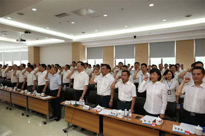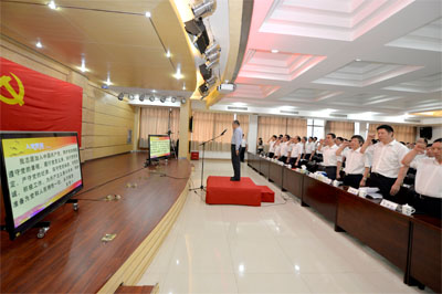 活動現(xiàn)場,集團公司黨委書記、董事長程并強帶領(lǐng)會場全體黨員面向黨旗莊嚴宣誓。按照集團公司黨委的安排部署,此次主題活動將進一步把“兩學(xué)一做”推向高潮。(曾堯/文 鄧超 費虎/圖)