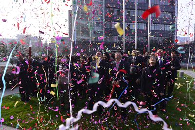? ?喜鵲登枝迎新歲,金雞起舞報春來。2月6日,農(nóng)歷正月初十,是中國五冶集團(tuán)雞年新春佳節(jié)后開工第一天。早上8點(diǎn)28分,伴隨著陣陣?yán)薰模懫鹆恕坝聯(lián)?zé)任?鼓足干勁?再創(chuàng)輝煌?”的口號聲,集團(tuán)公司川滬兩地領(lǐng)導(dǎo)、員工整裝待發(fā),喜迎新春開門大吉,共同祈愿集團(tuán)新年新氣象,大業(yè)蓬勃發(fā)展。(陳蕾/文?鄧超/圖)