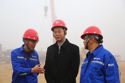 朱永繁在項目現(xiàn)場聽取情況匯報