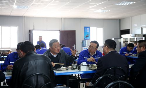 程并強(qiáng)與一線(xiàn)員工一起在項(xiàng)目食堂用餐