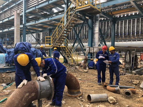 上海機電公司承建的寶鋼電廠205米鈦鋼復(fù)合板煙囪焊接項目