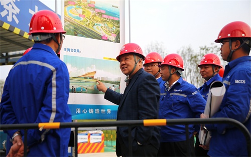 程并強一行實地查看了施工現(xiàn)場,認(rèn)真聽取了項目進度及下一步推進計劃等情況的匯報,就索網(wǎng)施工、膜結(jié)構(gòu)施工、幕墻安裝、地面平整、裝飾裝修等工序的相關(guān)施工進度控制、重要節(jié)點、工藝安裝、質(zhì)量安全管控、經(jīng)營管理等方面與項目管理人員進行了細(xì)致的交流和指導(dǎo),并與項目人員一起探討提高工效、改進工藝、裝飾裝修等方面的重點和難點。調(diào)研過程中,程并強對項目一線員工的辛勤付出表示感謝,并就下一步加快推進項目速度、提升項目管控水平提出了要求: