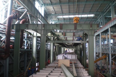上海技改公司承擔的三期寶鋼硅鋼項目中是工作量最大的一條機組,任務(wù)重,工期緊。目前,機組正處于設(shè)備安裝高峰階段,項目部科學(xué)統(tǒng)籌,合理安排工序,克服高溫影響,出口段設(shè)備基本安裝完畢;烘烤爐已進入耐材砌筑階段;前后清洗段槽體設(shè)備就位完畢,為清洗段配管工作創(chuàng)造好了條件;現(xiàn)在正在努力推進退火爐爐子鋼結(jié)構(gòu)平臺的安裝,為8月上旬進行退火爐安裝創(chuàng)造條件。